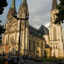 オロモウツ本駅から広い道路を旧市街に向かって歩くと高い2本の尖塔が見えます。ゴシック様式で塔の高さは100m、教会前広場から見上げると迫力があります。旧市街の入口に位置するので、ここからオロモウツ観光をスタートすると効率的に回れます。