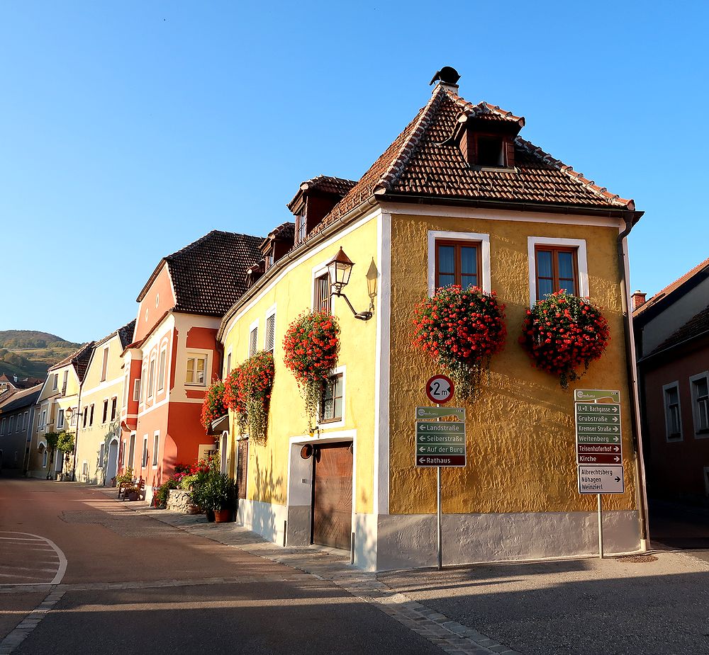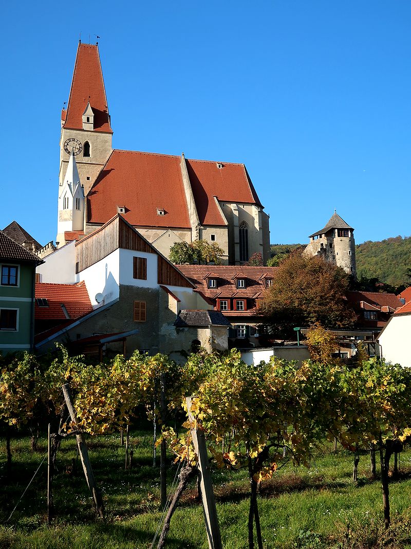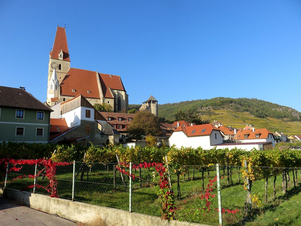10月末のブドウ畑が黄金色に輝く時期にレンタカーで訪れました。近くにデルンシュタインという有名な町がありますが、個人的にはこちらの町のほうが気に入りました。