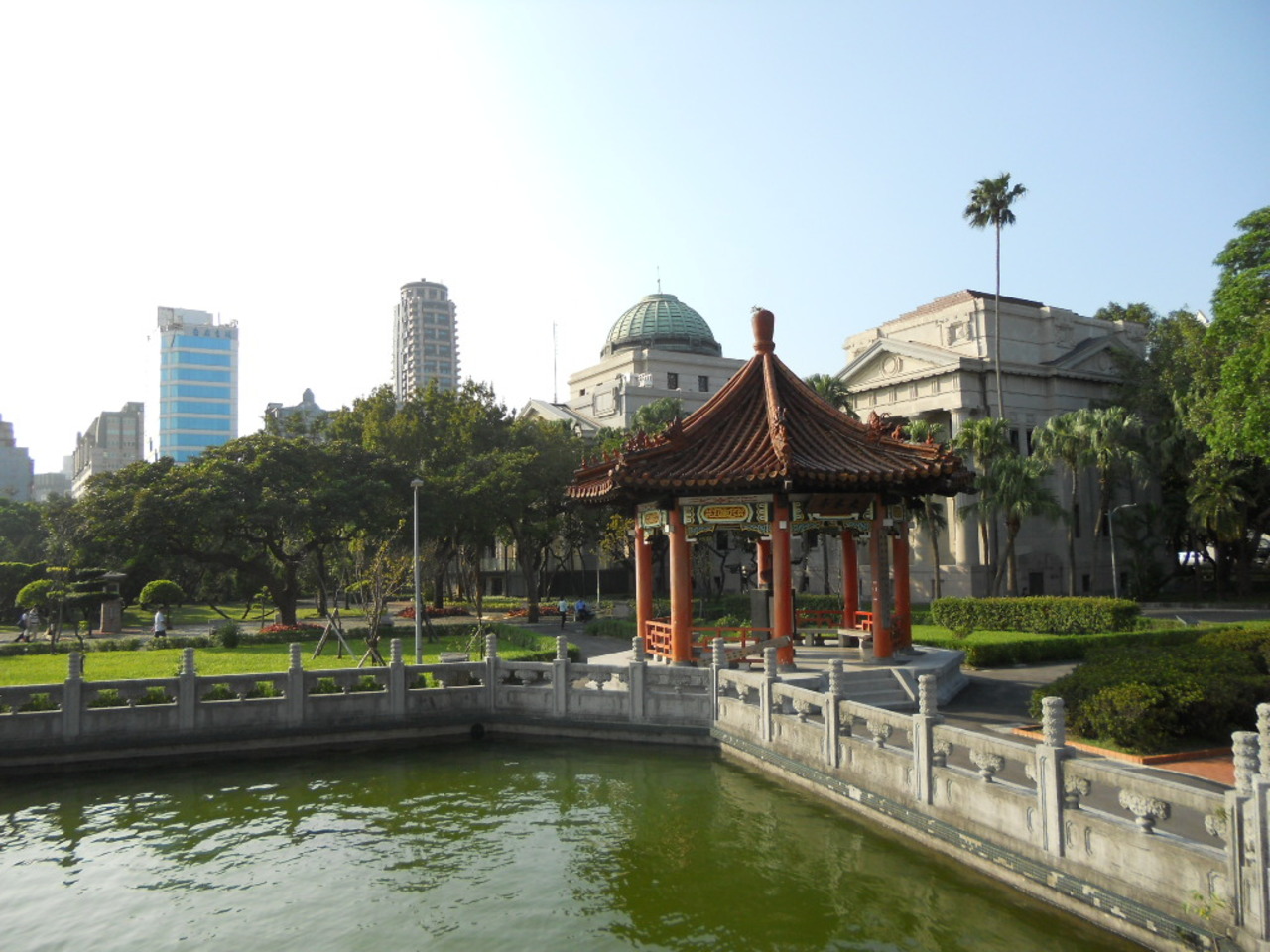 二二八和平公園内にある池です。池の中心辺りには塔のある東屋があり、池の周りにはいくつかの小さめの東屋があります。いかにも中国風と言えるような景色が楽しめます。池の水は、緑色できれいではありませんでした。