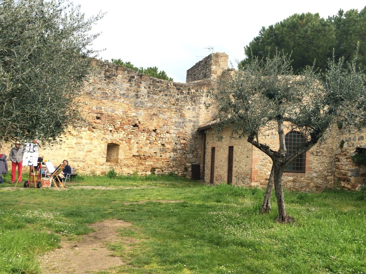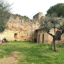 サンジミニャーノ歴史地区は高い場所に建っています。さらに歴史地区の中の坂を上ると、トスカーナの風景を見渡すことのできる場所がありました。まわりには城塞があり、歴史を感じました。サンジョバンニ通りには観光客がたくさんいましたが、このあたりはあまり人がいませんでした。