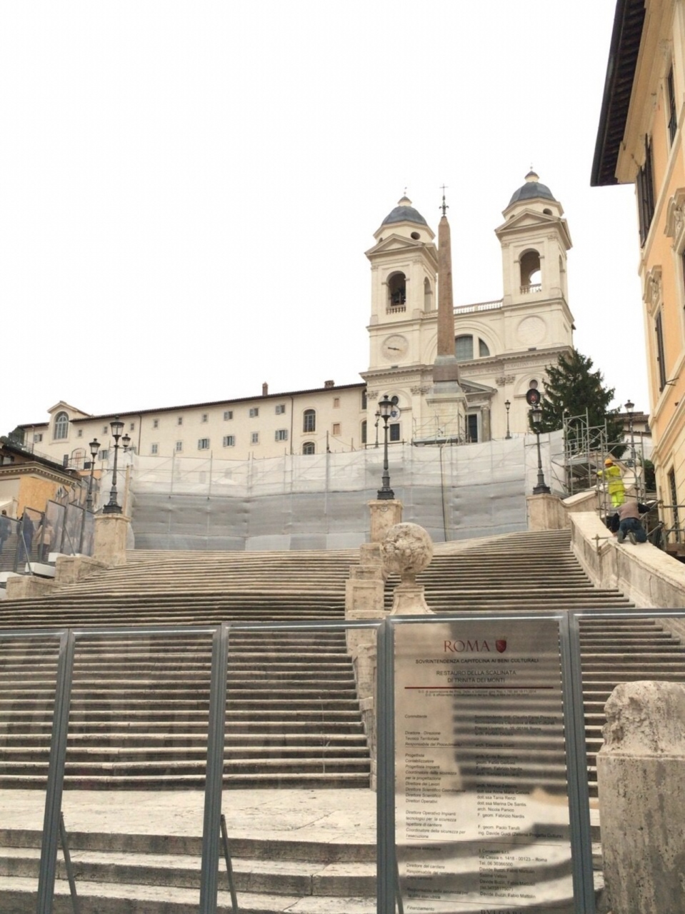 2016年3月に訪問した際は工事中で、階段に入れませんでした。おかげで、ある意味大変貴重な、だれも立ち入っていないスペイン階段を見ることができました。1年後に再訪したときは工事は終わっていましたので、大変混雑していました。