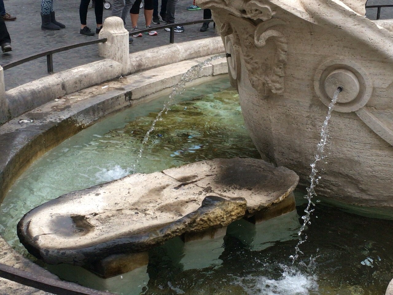 スペイン広場にあります。有名な噴水です。たくさんの観光客が手を伸ばしたりしていました。ローマにはいくつも有名な噴水がありますが、ナヴォーナ広場にある四大河の噴水のような迫力や大きさはありません。観光客がまわりにたくさんいるのでなかなか近づけませんでした。