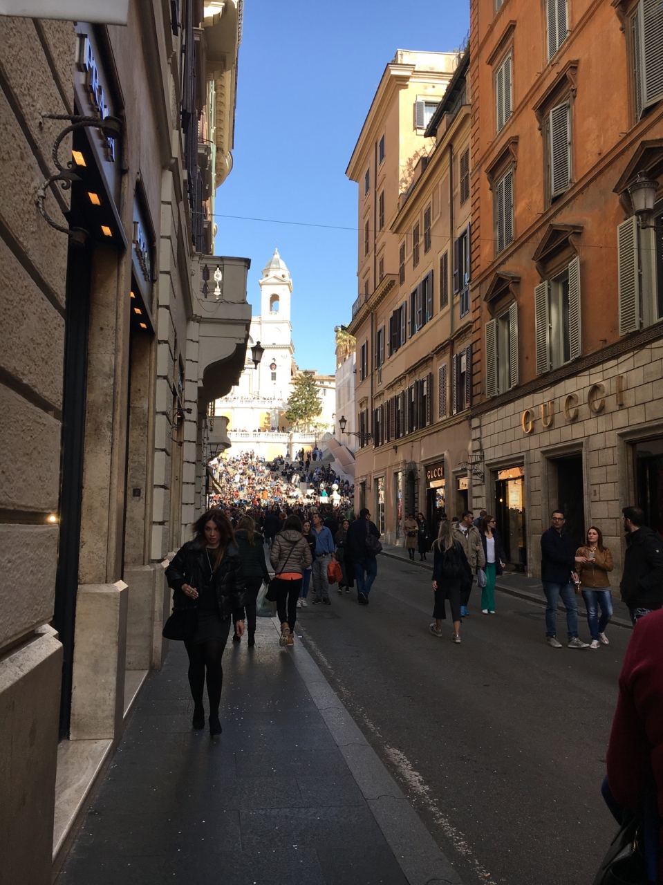 スペイン広場から一本入った通りです。高級ブランドショップが並ぶ通りです。自分には手が出ない高級ブランドなので、縁はありません。観光客がたくさん通っており、混雑する通りです。いつかはお店をハシゴ出来たらと思いました。