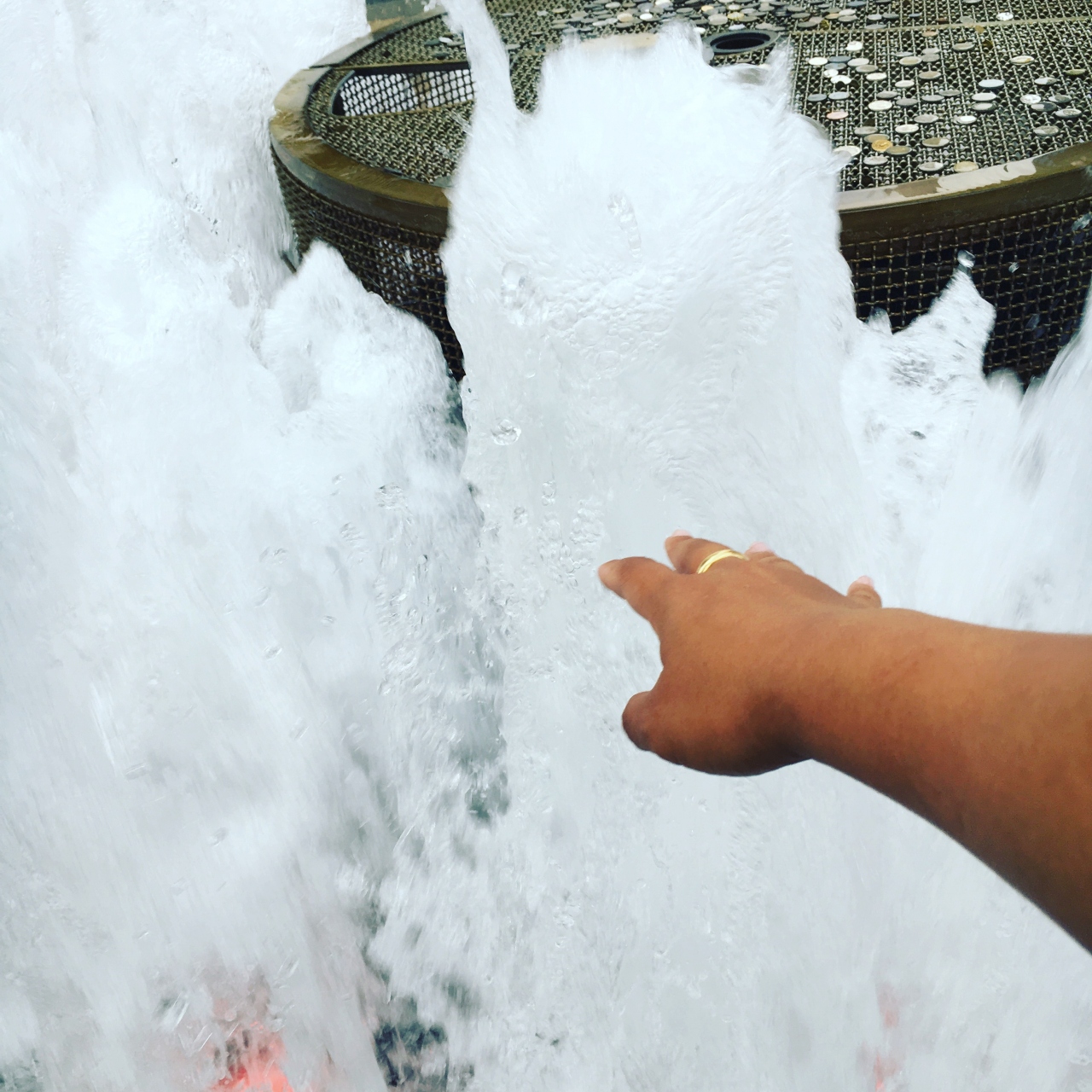 普段は入れない噴水エリアに入れる時間帯があり、10名くらいずつ入れてもらえます。中央の小さい噴水を目を閉じながら願い事を唱え3周すると願いが叶うといわれています。