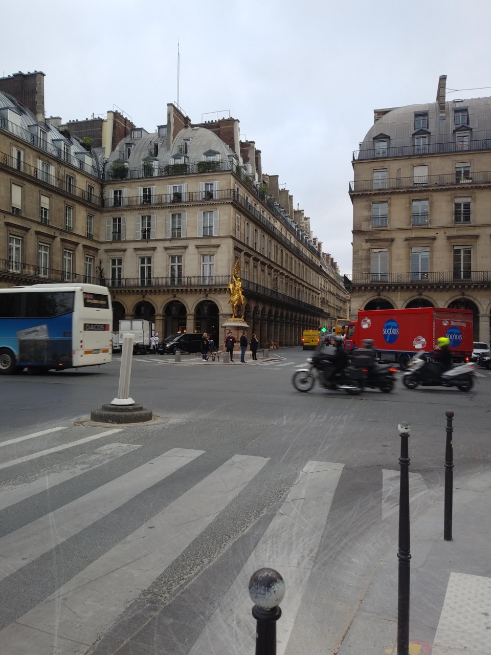ルーブル美術館の出口そばにあるピラミッド広場の中に金色に輝くジャンヌダルクの像があったのですが、交通量の多い場所だからか昼間何度も通っていたのに今回初めて気付きました。朝の9時過ぎぐらいであまり車が通る時間帯じゃなかったからだと思います。