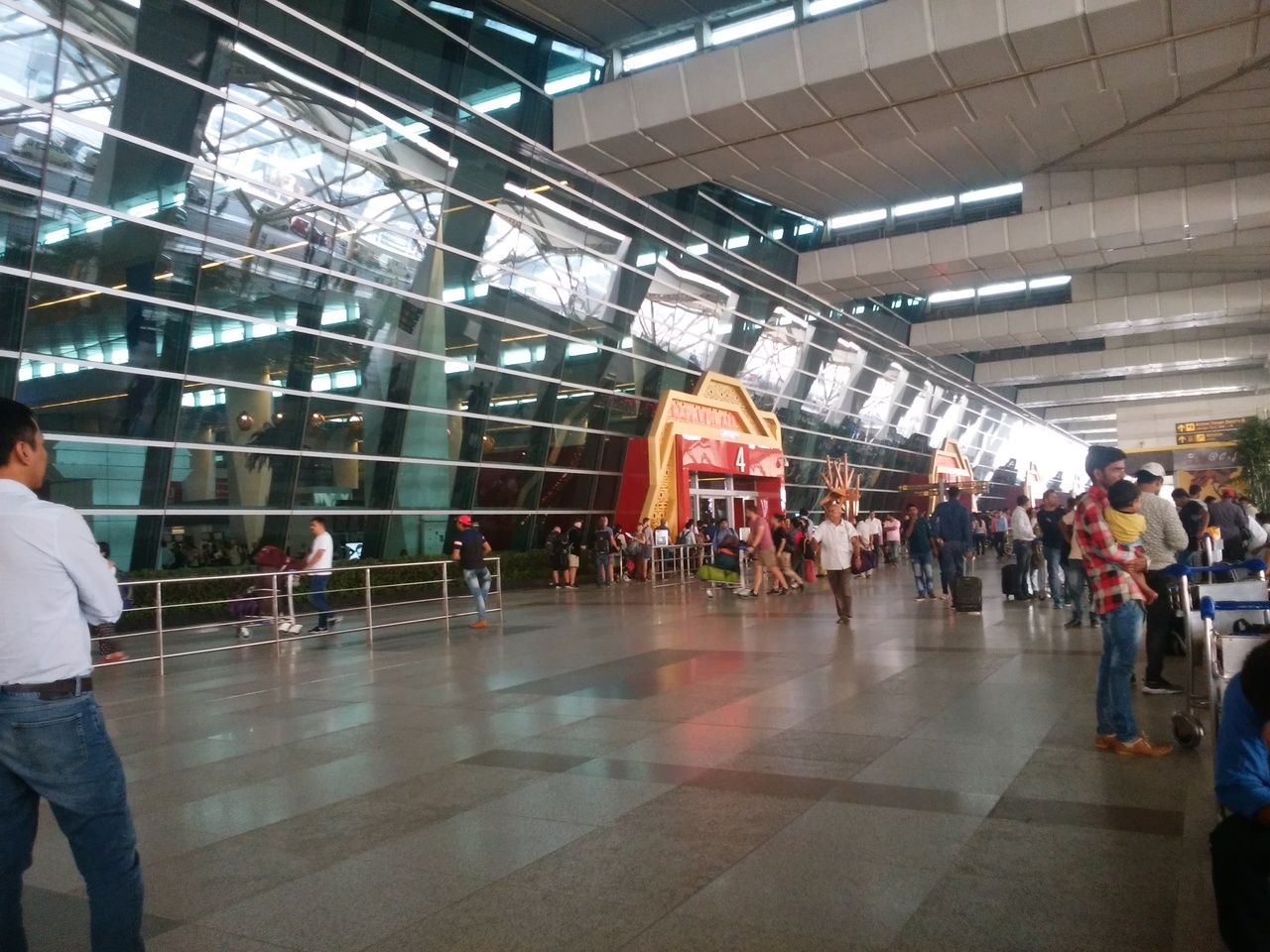 早めに空港に着いたのですが、4時間前からしか空港に入れてもらえなかったです。空港に入るにはイーチケットとパスポートが必要です。入り口の前は、空港に入るのを待ってる人がたくさんいました。タクシーに声をかけられるくらいで治安は悪くないのでのんびり待ちました。