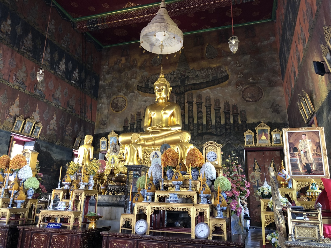 願い事や健康が叶うとされるバンコクの人々に頼りにされている仏教寺院です。ワットポーからチャオプラヤ川をボートで渡り、訪れました。観光客よりも地元の熱心な信徒が奥参拝に来ていました。梵鐘が多く吊るされており、もし訪れたら鳴らしてみましょう。