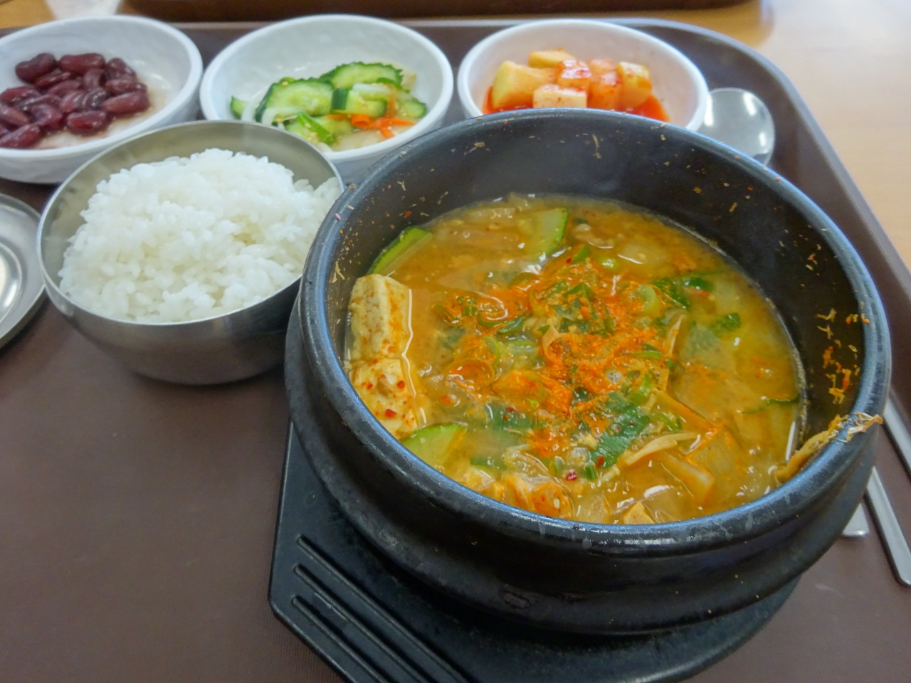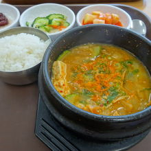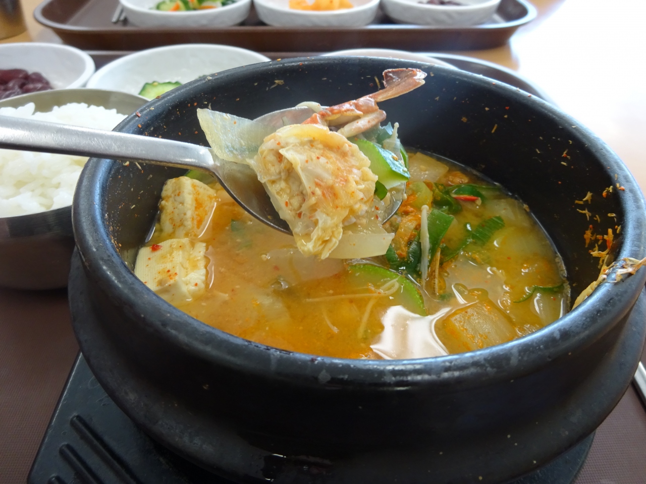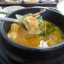 港町なので最後も「海鮮スンドゥブ」にしました。カニ、アサリ、アワビなど海鮮入りでとても美味しかったです。