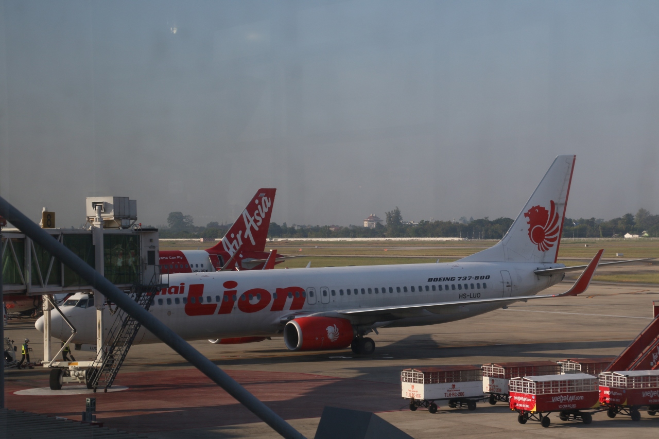 市街地との距離が近く、飛び立つ機体を頻繁に見かけます。タクシーやトゥクトゥクが待機していますが、市内循環の真新しい路線バスが走っているのでそちらをおすすめします。両替は最低限の額にして、市内でまとまった額を替えるとよいでしょう。