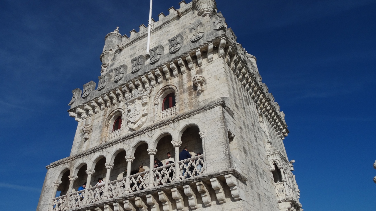1519年にポルトガル王マヌエル1世の指示によりテージョ川を監視するために、建てられました。バスコダガマのインド航路発見で得た莫大な財産を元に、キリスト教とイスラム教が結びついたムデハル様式に、大航海時代を表す海洋や植物の彫刻を取り入れて新たに生み出されたマヌエル式という建築様式だそうです。このマヌエル様式の建物は、1755年のリスボン大地震でほとんどが倒壊し、残っているのは、この塔とジェロニモス修道院だけで、しかも、それまでは中州にあったものの、河岸が変わり、この位置になったとか。