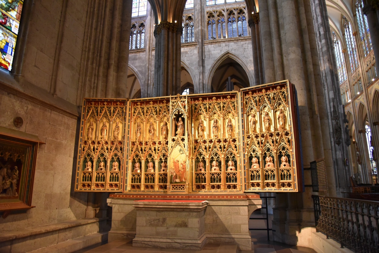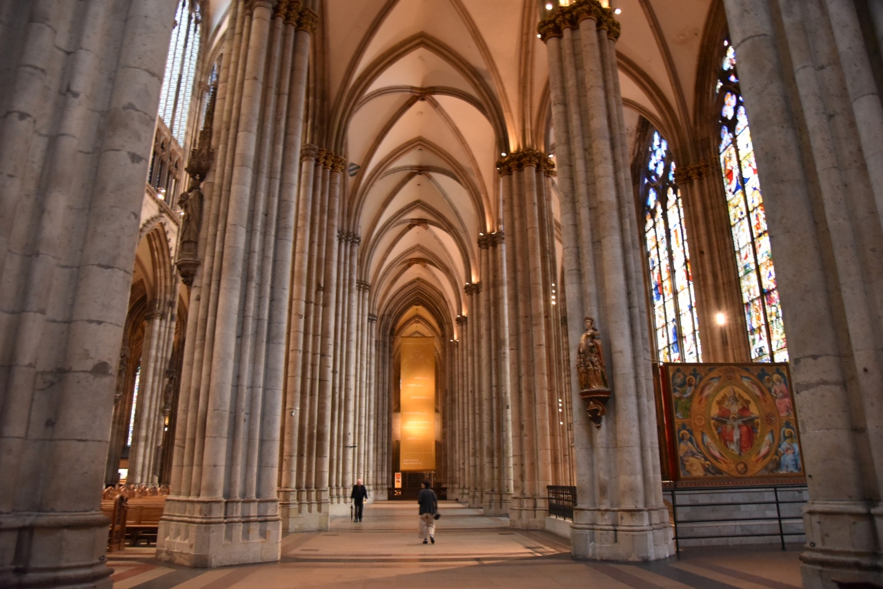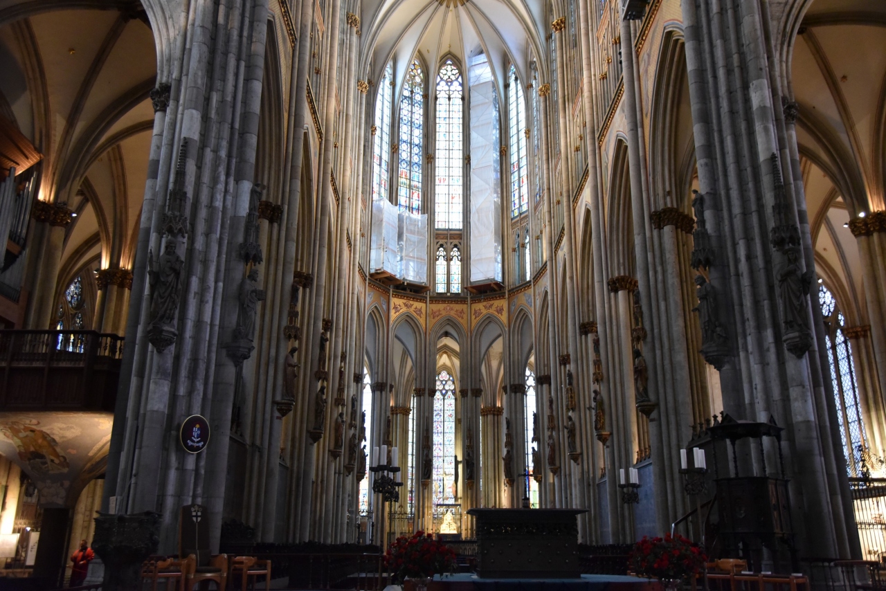 ・教会の中に入ると今までみた建造物すべての中で最も天井が高く内部空間が広い建物でした。大きくて美しいステンドグラスも見ものです。