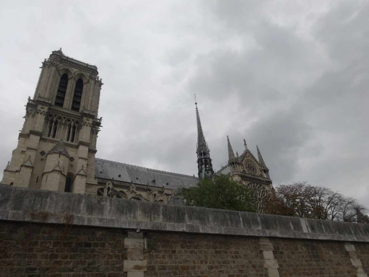 セーヌ川クルーズではノートルダム周辺は川幅が狭いこともあるのかもしれないですがとてもゆっくり進み、今まで見たことのない角度からのノートルダムを見ることができました。尖塔の高さやバラ窓だけでなく、なんてことないと思っていた四角い塔もきれいでした。