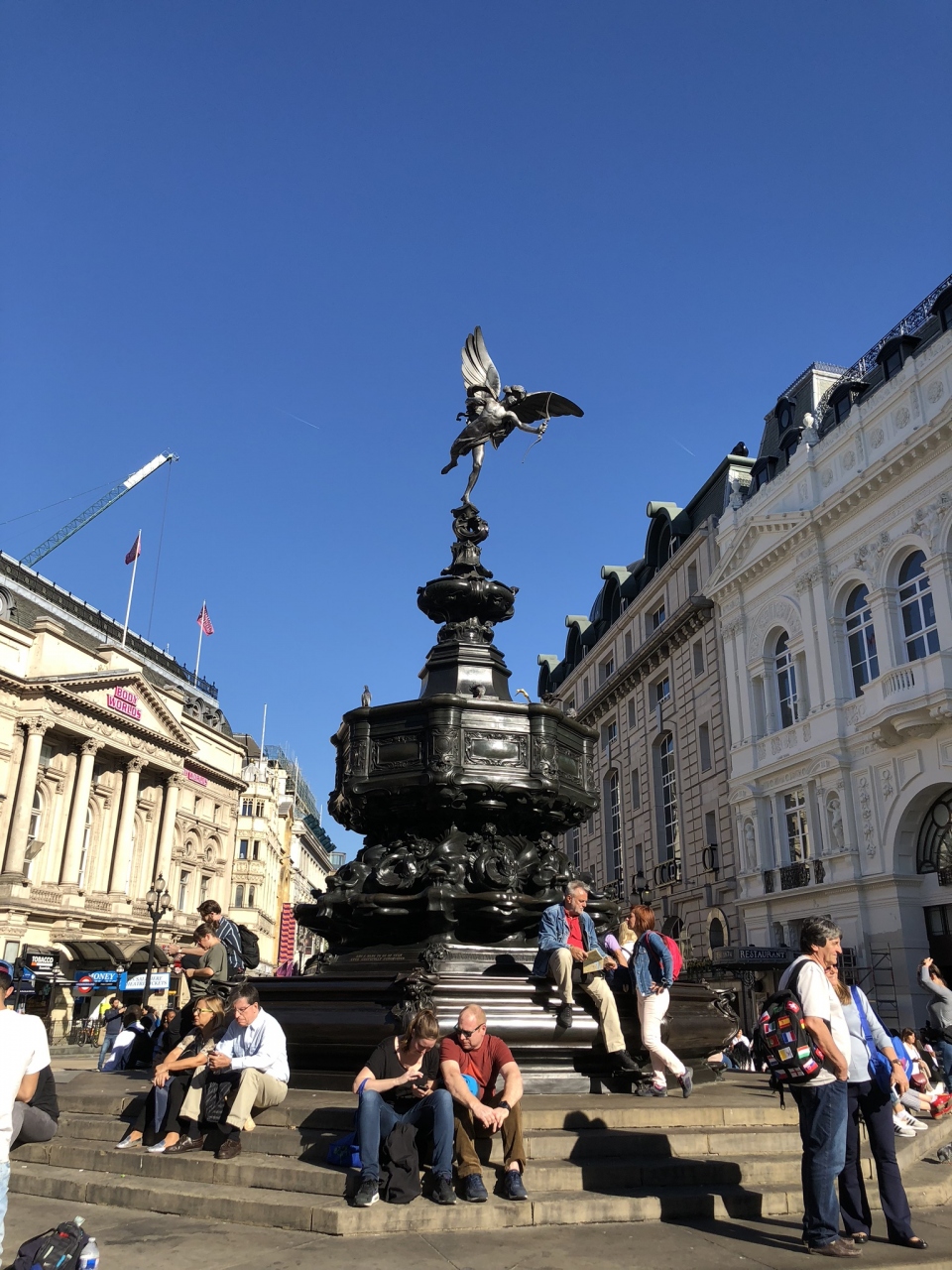 トラファルガー広場の近くにあります。たくさんの人が集まっています。