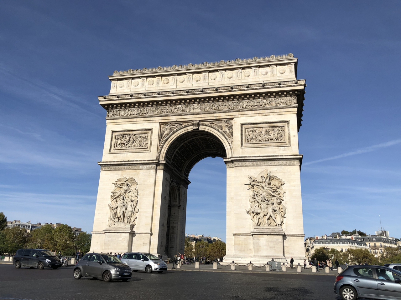 凱旋門を真下から見てみたり、一周回ってみたり、エッフェル塔が小さく見えるのを見たり、シャンゼリゼ通りを見たり…です。