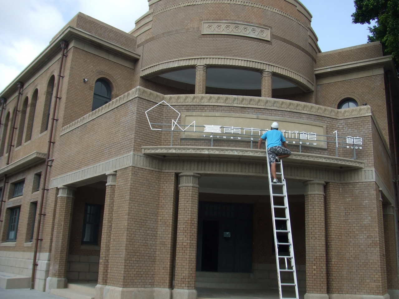 旧警察署は現在は臺南市立美術館。 とても美しいレンガの建物です。 どんな展示があるのか楽しみにしていたんですが、9月半ば、まだ修復中でした。正面のサインをつけている最中だったので、あと少しで開館でしょうか。