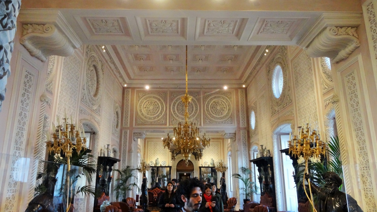 ペーナ宮殿は、1836年にポルトガル王マリア2世の旦那フェルナンド2世により建てられました。ゴシック、イスラム、ルネサンス、マヌエルと様々な様式が混在しており、しかもカラフルです。まるでテーマパークの様なのですが、国立も宮殿なので、今でも、迎賓館として使ったり、公的行事も行われるということで、まさになんでもありですね。宮殿内部もふざけているのかと思いましたが、想いに反して、ザ・宮殿という雰囲気で、贅を尽くした作りとなっていました。宮殿内部の出口にお土産&カフェがあります。