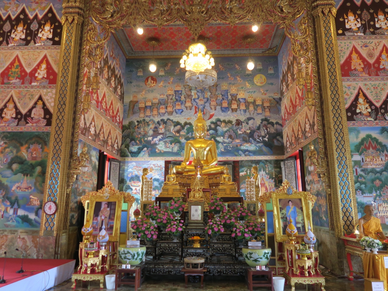 礼拝堂の外観はタイによくあるタイプですが、中に入ってみると内壁一面に描かれた仏教世界画がとても綺麗で見入ってしまいました。個人的にはフリーでこのエリアに来たらな、必ず寄っても損はないと思えるぐらいです。