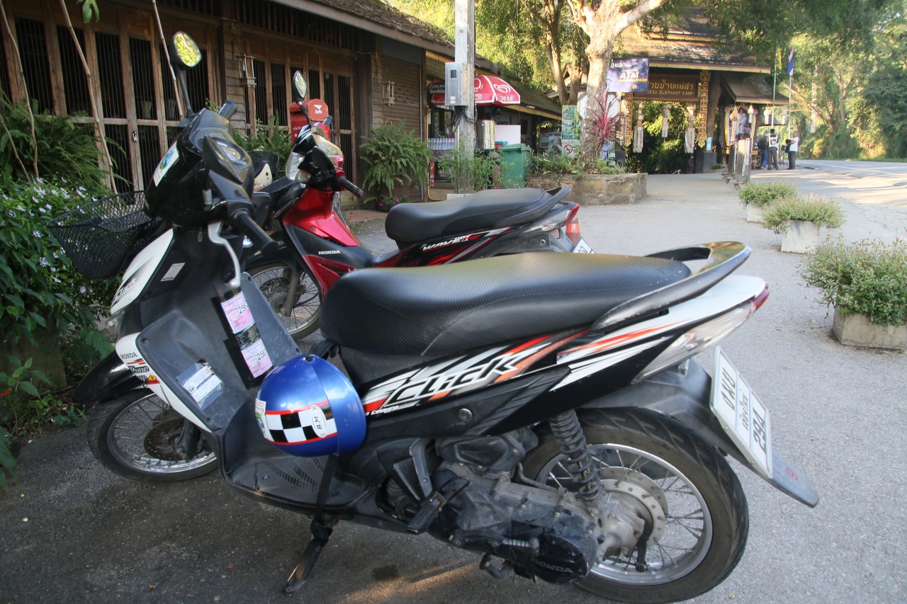 他の人の書き込みからするとちょっと高いかもしれませんし、バイクを選ぶこともできませんでしたが、近くに他のレンタル屋が見当たらなくて面倒くさかったのでそこで借りました。デポジットはパスポートもしくは2000Bでした。