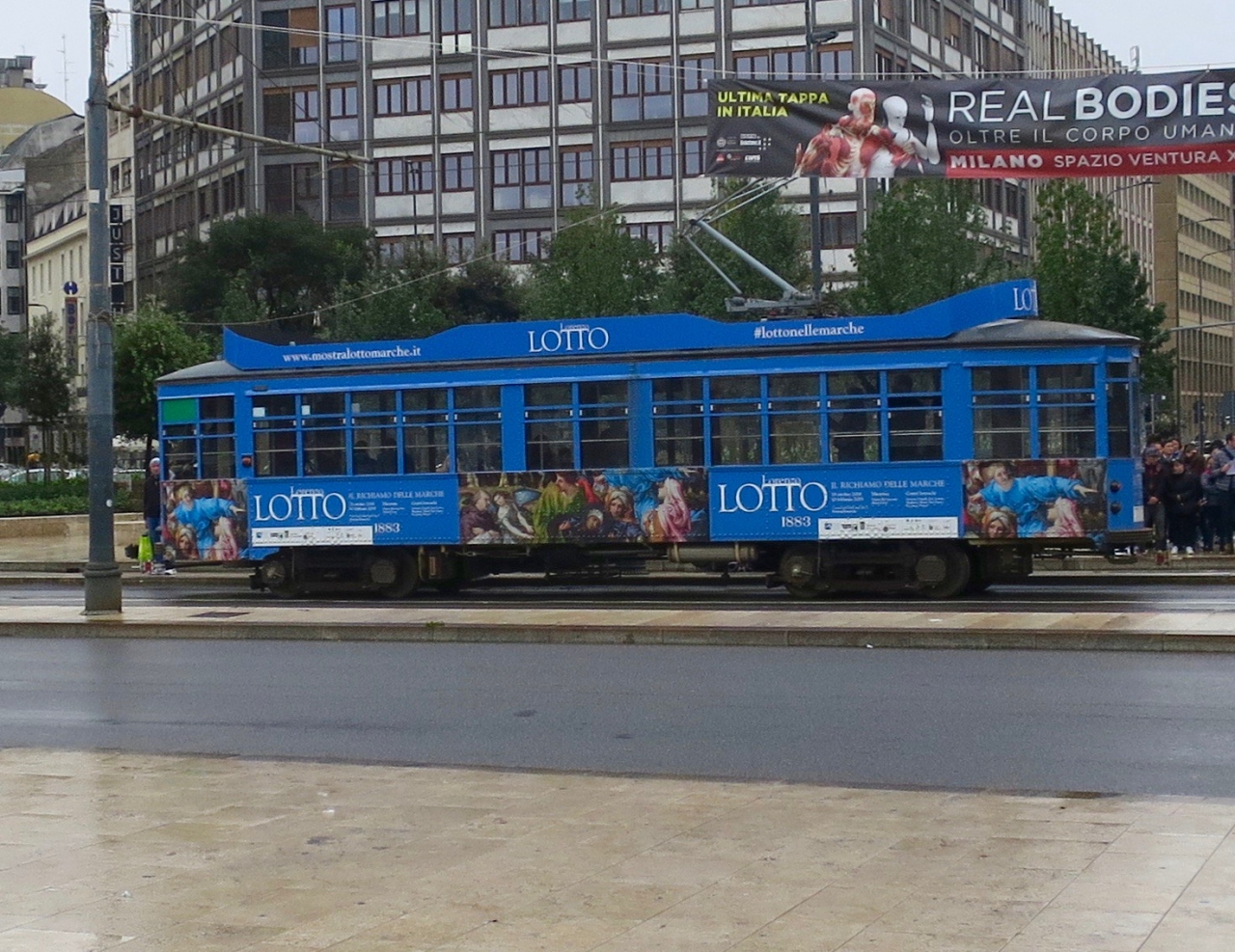ミラノの名物ともいえるトラム。最近は近代的な車両の導入も増えてはいますが、まだまだ窓枠が細いスマートな昔ながらの角ばったデザインの車両も健在でうれしくなります。古風な街の風景には非常に似合います。ただしラッピング車両が増えてきているのは少々残念です。