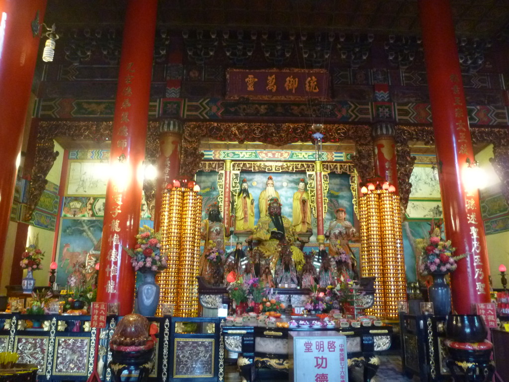 蓮池潭では一番大きい廟で、文武(文:孔子、武:項羽)の主神を祭っています。道から石段を上っていきますが慈済宮と同じように立派で豪華な廟です。ここは、龍虎塔から離れている分、慈済宮と比べて観光客が少なくなりました。