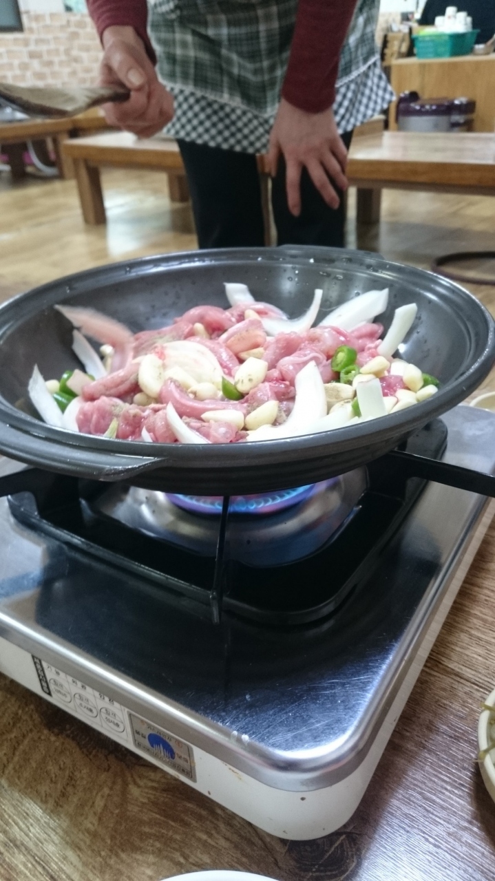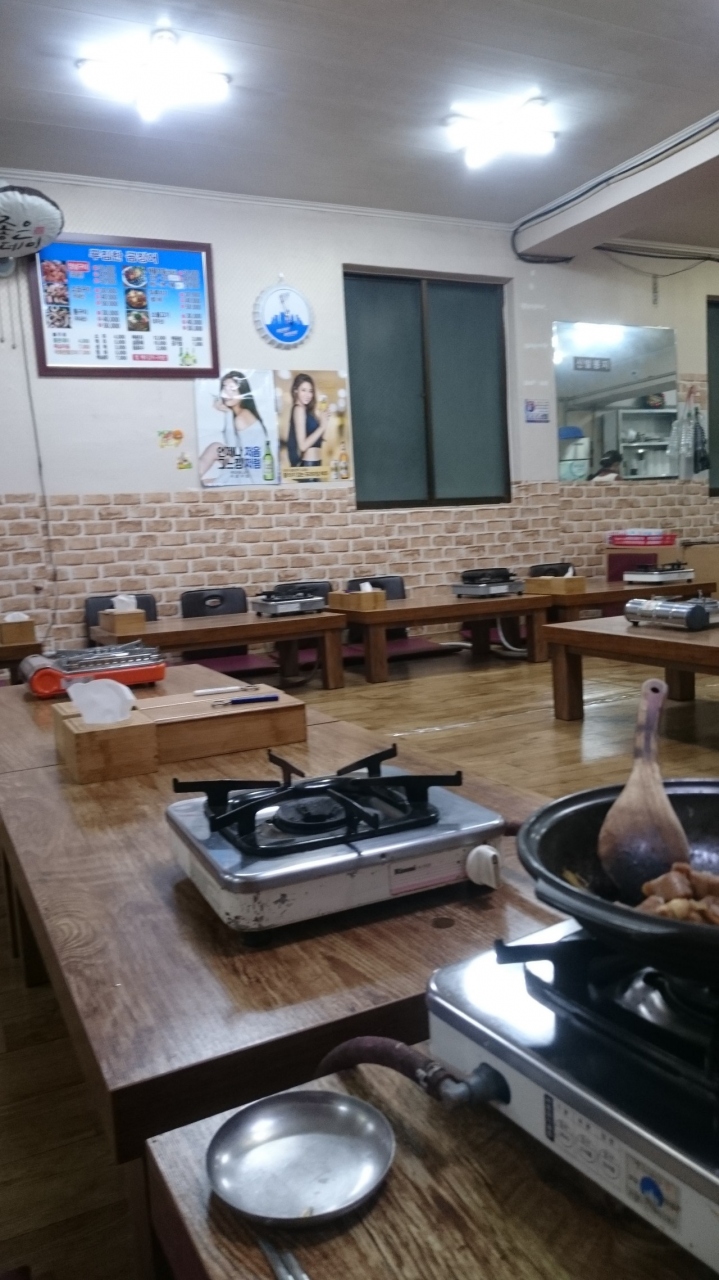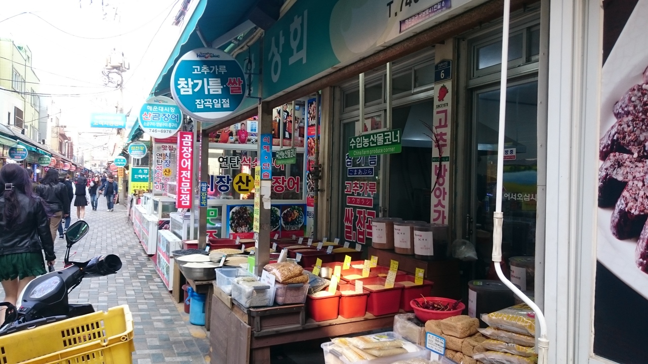 海鮮料理を食べたいと思って海雲台市場をぶらぶらし、愛想の良さそうなアジュマに誘われある店に入ったら コムジャンオ(ヌタウナギ)専門店でした。メニューを見たらヌタウナギしかありません。席に座った状態から退出する勇気もないので食べて見ることにしました。アジュマが運んできた切断されたばかりのウナギは鍋の中でまだニョロニョロと動いて不気味ですらありました。ただし結局のところ焼き肉と同じように、小さく切ったヌタウナギとニンニクやコチュジャンと一緒にサンチュで巻いて食べるので、歯ごたえがコリコリしているものの普通の焼肉と同じように食べることが出来ました。でも次回は間違って専門店に入ることは無いようにするつもりです。