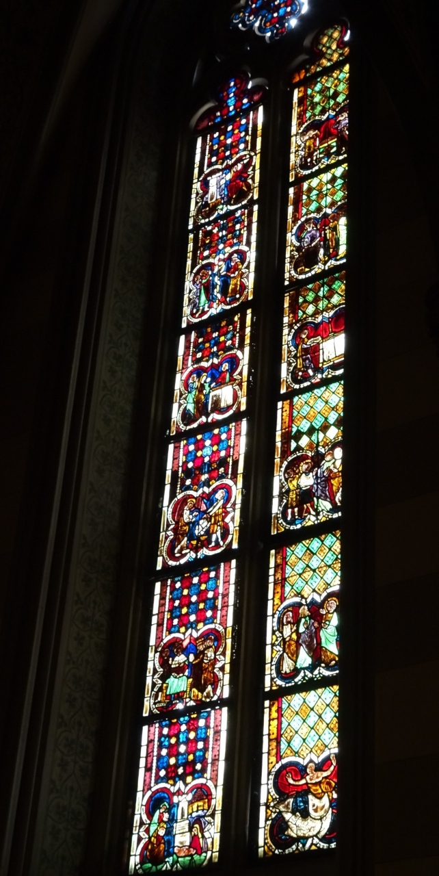 ブルーの天井と色鮮やかなステンドグラスが印象的。