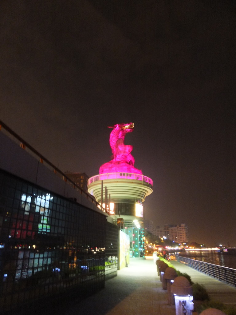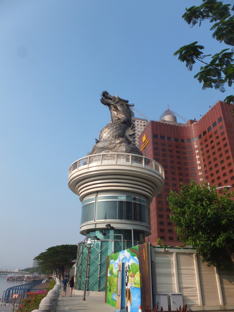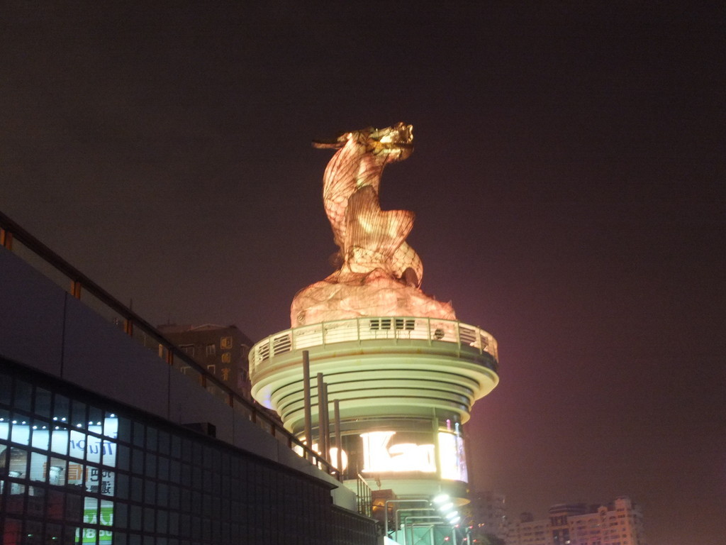 アンバサダー ホテル(高雄国賓大飯店) の前、愛河沿いに奇抜なモニュメントがあります。中国伝説上の動物「鰲(ゴウ)」と言うそうです。2001年の高雄ランタンフェスティバルの為に作られ、その後は、高雄ランタンフェスティバルのシンボルとして、そのまま残されています。また、夜には色々な色にライトアップされます。