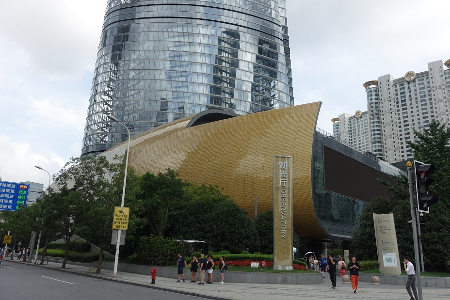 浦東の高層ビル群の一画に、ひときわ高くそびえているのがこの上海タワーです。上に行くにつれてねじれたような形になっていて、なんとも不思議な形です。下層はショッピングモールになっていて、高級なお店が集まっています。
