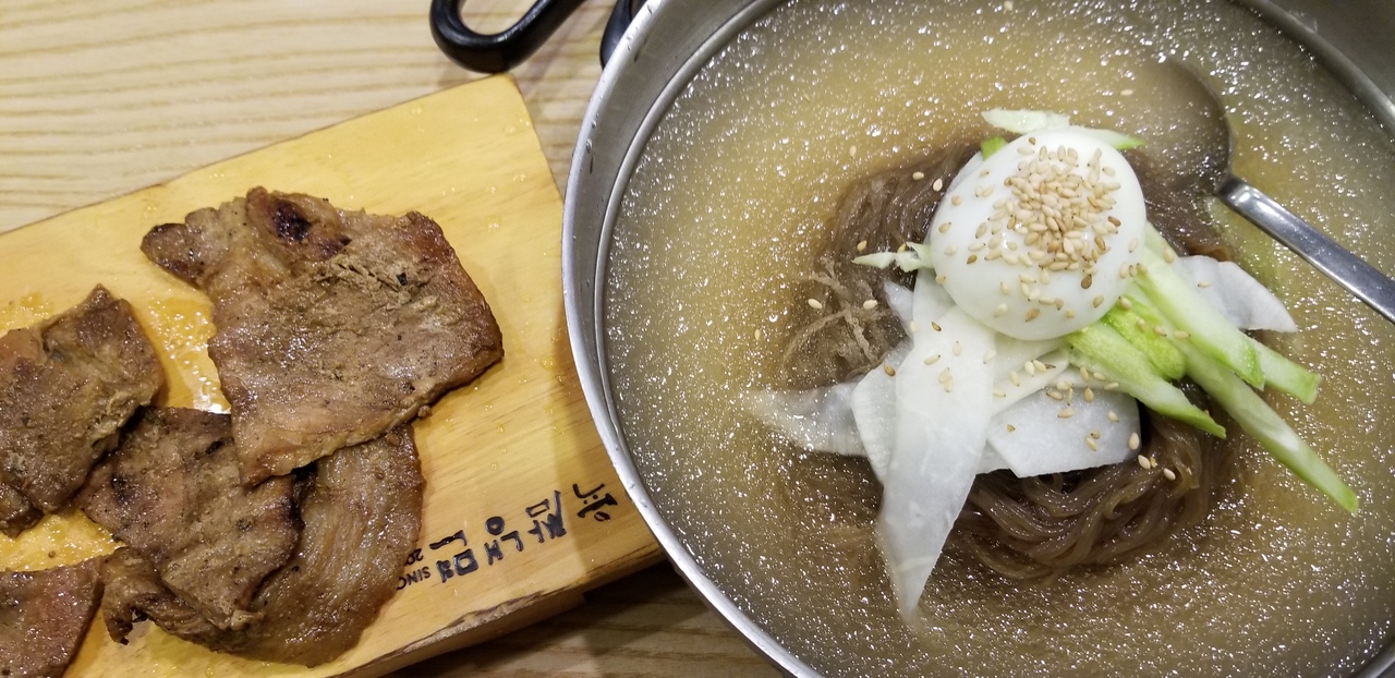 数年前に大学路で食べた冷麺とビビンパが美味しかったのが忘れられず、当時撮った写真を頼りに調べて再び訪れました。冷麺はコクのあるスープでやっぱり美味しかった~そして一緒に出てくるお肉も柔らかくて美味しい^^*お肉もついて6500ウォンとリーズナブル!そしてこのお店、明洞にもあるチェーン店のようです。