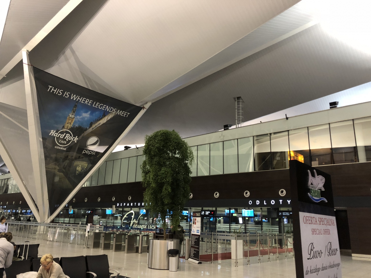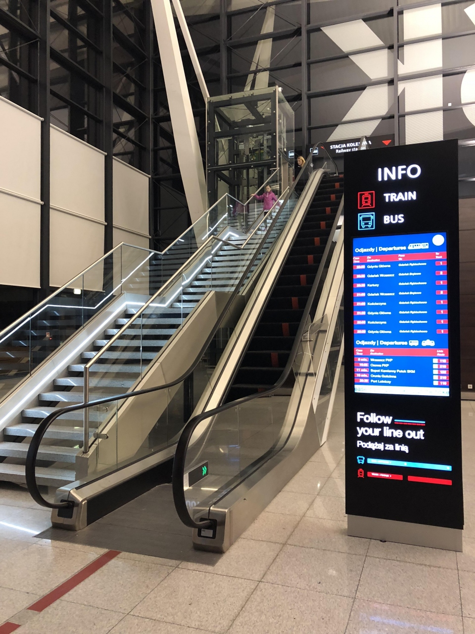 19時半ごろ着の便でしたが、グダンスク本駅方面への鉄道の便は1時間に1本と非常に少なく鉄道でのアクセスは良いとは言えません。ただ、鉄道の空港駅と空港は直結されているので迷うことはありません。時間に余裕がある方は鉄道でも良いかと思います。バスは鉄道よりも本数があったようですが、同じ夜間帯は頻発しているようではありませんでした。