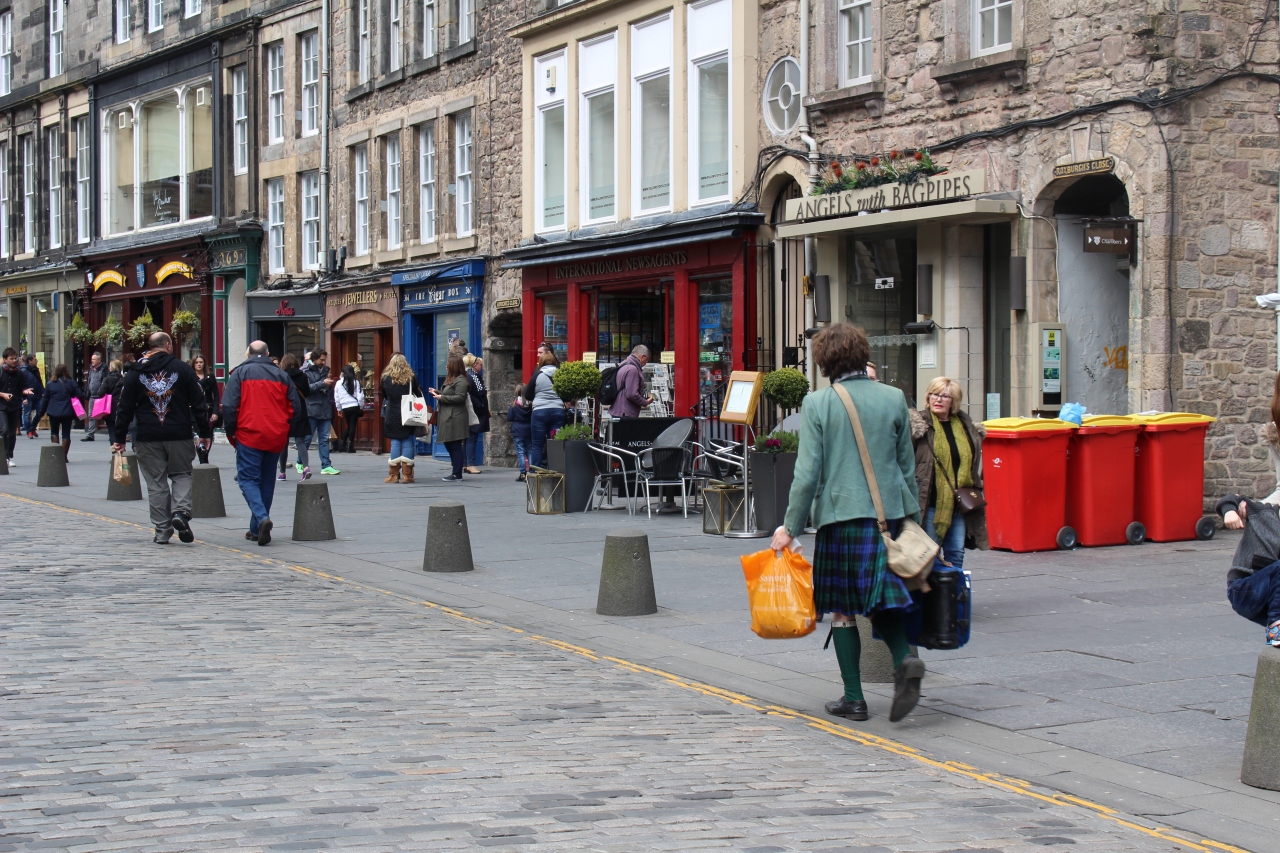 グラスゴーからエディンバラへの日帰り旅行で訪問しました。ウェイバリー駅からエディンバラ城へ向かうまでのメイン通りになります。大変賑わっており、お店も人も多いです。また週末には大道芸などのパフォーマーも多いです。