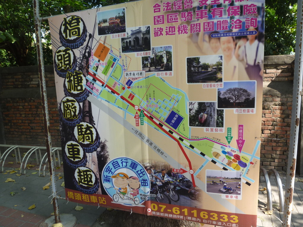 台灣糖業博物館(橋頭糖廠)は、日本統治時代に建てられた、製糖工場で、館内には、製糖工場跡、農場機具展示場、製糖流程館、鉄道景観区、製糖文物館、当時の建築物などがあります。また、入口手前には、日本式木造建築、防空壕など見ることができます。