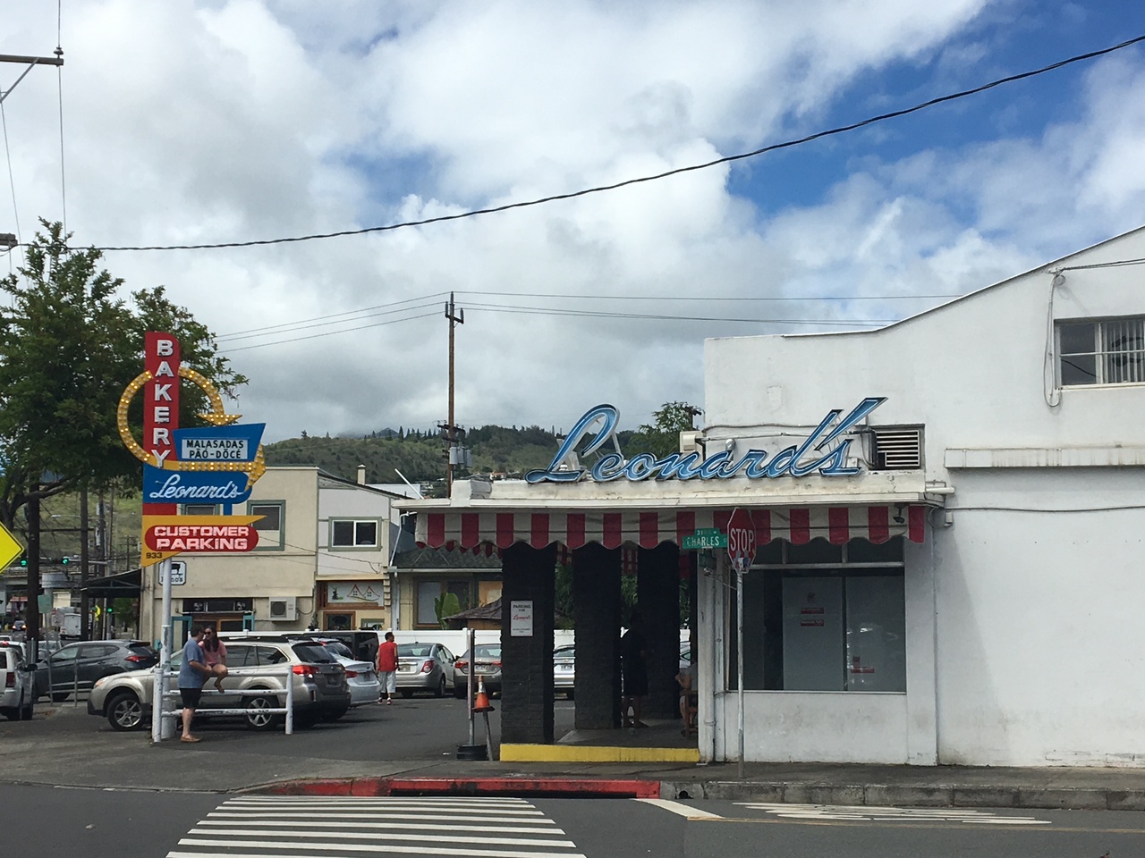 有名なマラサダを食べに行きました。ワイキキから離れた場所にありますが、LEALEAトロリーを利用するとすぐ近くの停留所まで行けます。店構えもとても可愛くて、絵になる風景でした。店内は昔ながらのお菓子屋さんという雰囲気で、カラフルなカップケーキなどアメリカンなお菓子が色々ありました。狭い店内にマラサダをオーダーするお客さんがぎっしりなので、注文する列と受け取る列を間違えないように注意が必要です。熱々のマラサダはふわふわで美味しかったですが、冷めると砂糖が甘すぎるので、熱々で食べることをおすすめします。