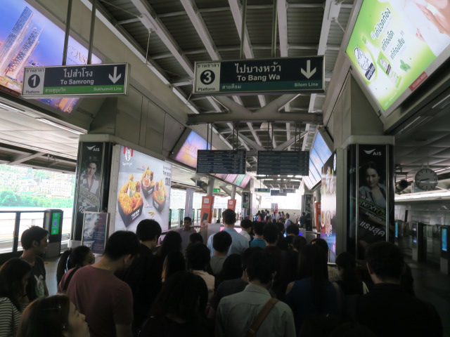 高架鉄道BTSのシーロム線とスクンビット線の乗り換え駅。