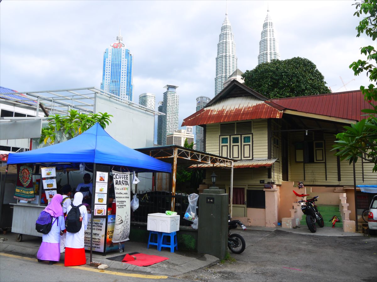 チョーキットの市場から数本南に入った辺りにあります。独特の下町風情があり、古い木造の家並み、昼下がりの静かな食堂などに出会えます。家越しにツインタワーが見えるのも新旧のコントラストとなって良い。あてもなく散策して数十年前にトリップするにはいい場所です。