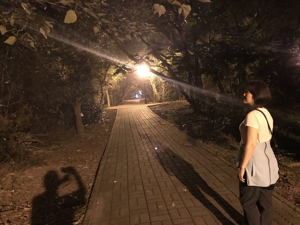 夜、妻と自宅から5分くらいの所にある原生植物園・都市森林浴場を散策しました。原生植物園・都市森林浴場は道を隔てて隣合わせにあり、地元民の散歩コースになっており、我々夫婦の散歩コースでもあります。