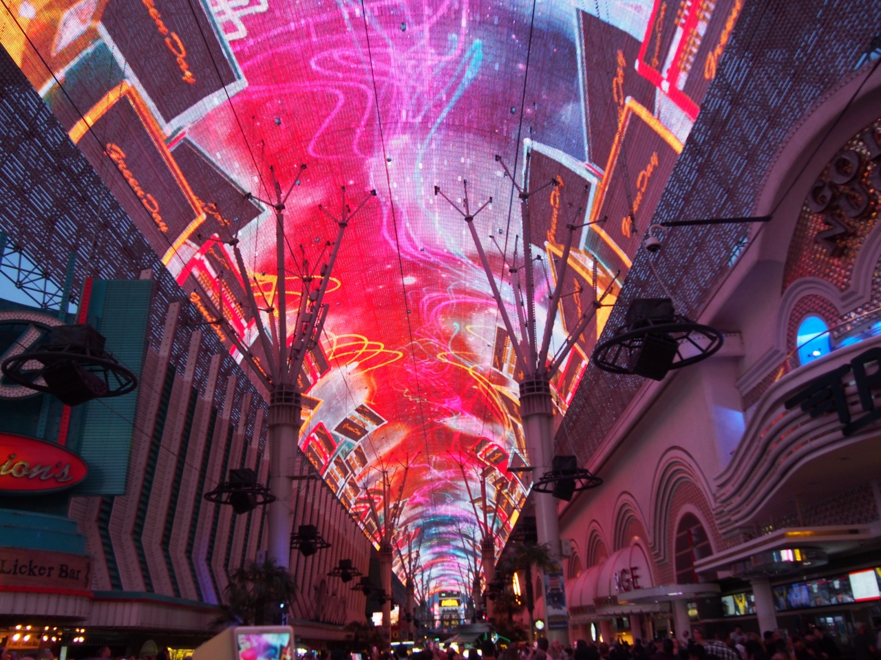 ラスベガスのダウンタウンで夜からやっている音と光の映像ショーです。もちろん無料です。きらびやかな光の変化を楽しめます。