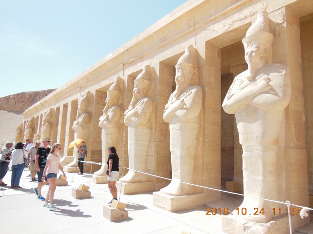ルクソールの町は古代エジプト時代にテーベと呼ばれる首都として繁栄していたとのことです。ナイル川を挟んで東西に分かれ、東側は生者の都でカルナック神殿やルクソール神殿があります。西側は死者の都で王家の谷がある古代墓地です。この西岸・東岸を隔てるナイル川を渡るのに渡し船を使用しました。風が心地よかったです。西岸・東岸の有名所を見るだけで1日かかります