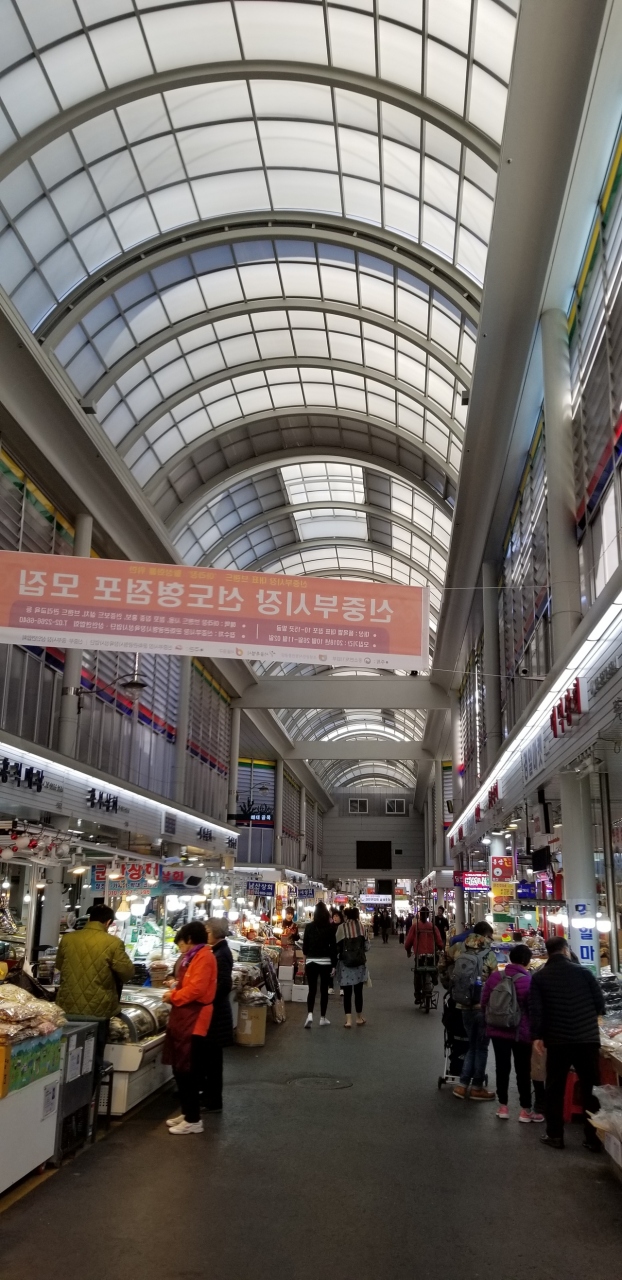 宿泊したホテルから広蔵市場に向かおうとしたところ中部市場を発見。入口で美味しそうなドーナツを揚げていたのでまずはドーナツから。アンコが入ったまん丸ドーナツはもちもちでとても美味しかったです。市場内は干した魚系の海産物が多い印象でしたが明太子やキムチも美味しそうでした!