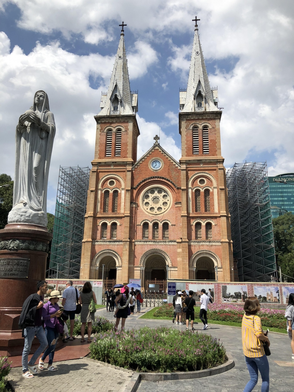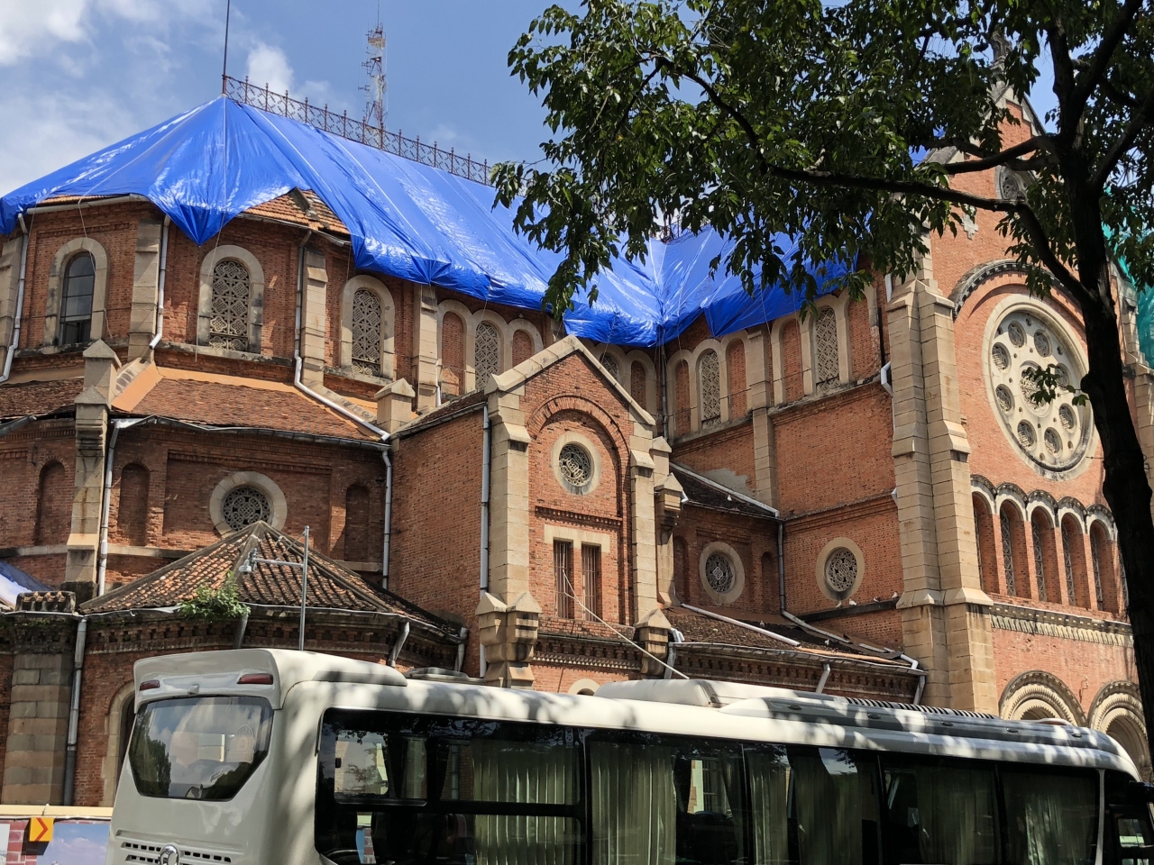 足場を組んでありますが、正面からはマリア様の像と協会が見ることできます。