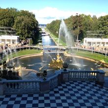 サンペテルブルグから高速船で約30分ほどでペテルゴフに到着しますが、船着き場から下の庭園に入るにはチケットを購入して入りました(900P)まっすぐ進むと豪華な噴水を見ることができます。他にもローマの噴水やマルリ宮殿の池など見どころはたくさんあります。