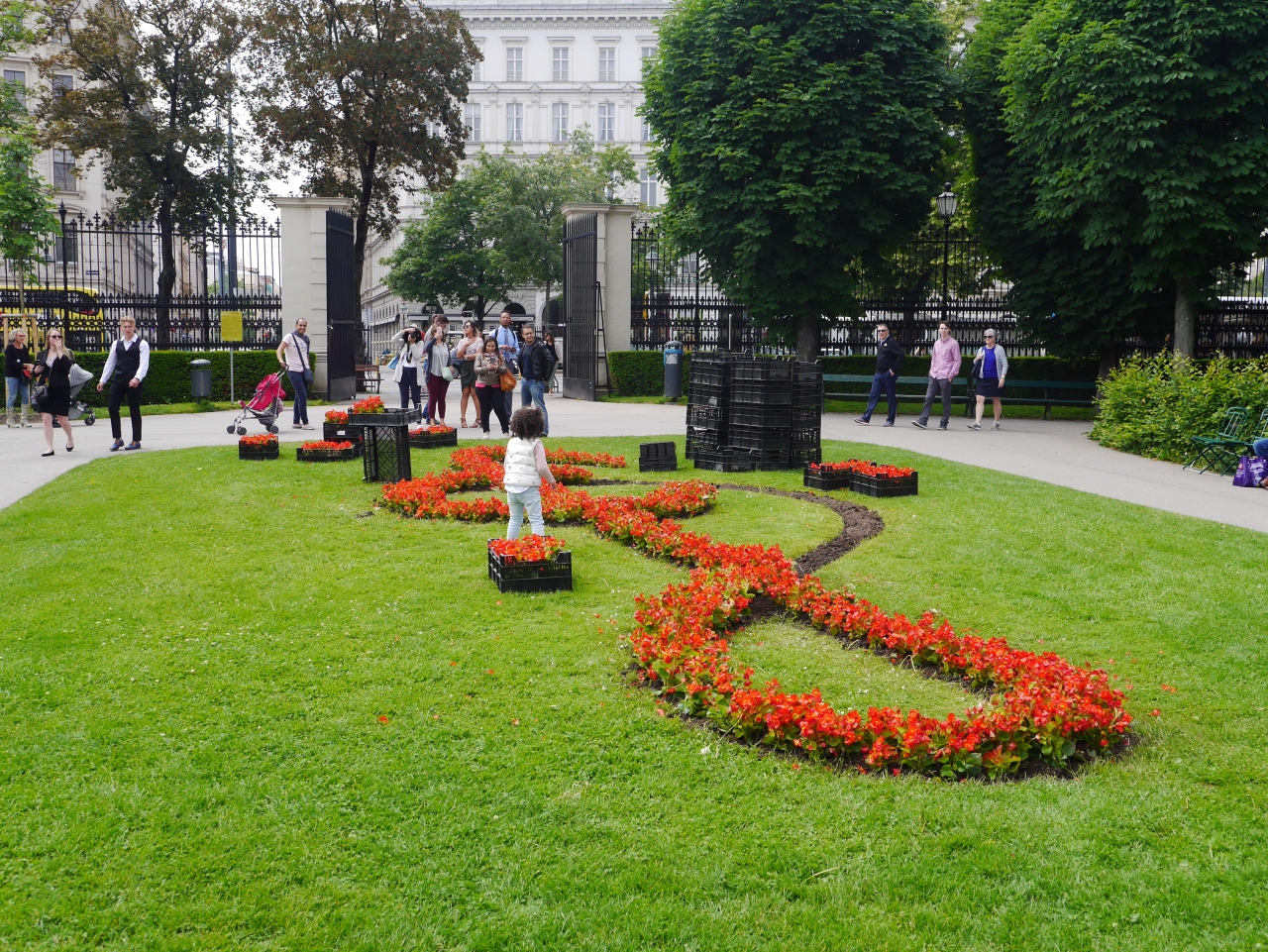 あまりガイドブックで調べていなかったのですが、偶然にもたどり着くことができました。建物に囲まれた木立の中の小さな公園、ト音記号の花壇の先にあるモーツワルト像は、音楽の街ウイーンにふさわしい観光スポットです。残念ながら花壇は模様替え中でしたので写真は何とも。それと、ヨハンシュトラウスの像もそうですが、音楽がながれていたらよかったかな。