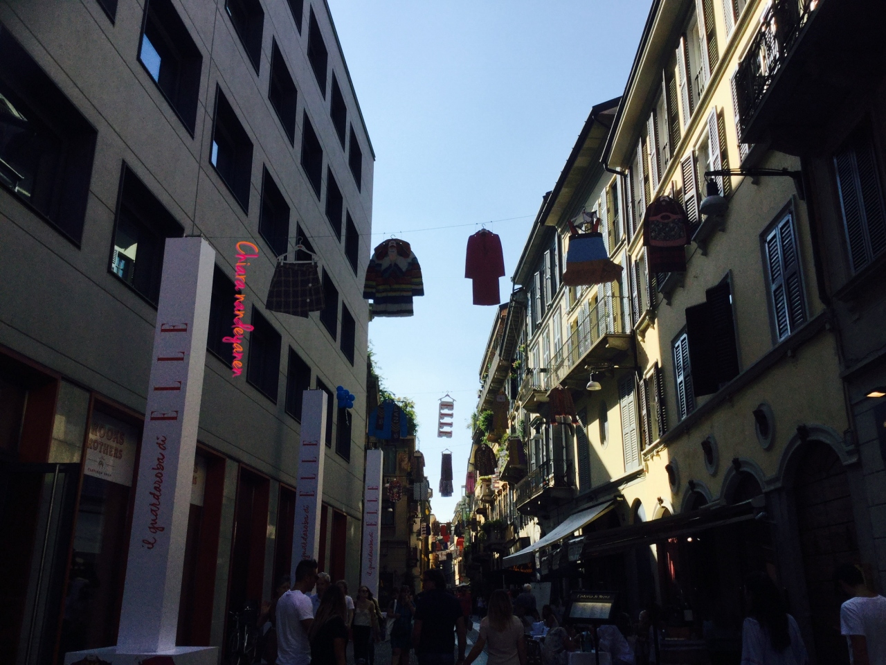 ブレラ絵画館に行くためにガレリアから歩きました。Wi-Fi を持っていたし、地下鉄で迷いそうな気がしたので。まず、歩くだけで楽しかったです。芸術とファッションのエリアという感じでした。ファッションと言っても高級な店が立ち並んでという意味ではなく、伸び伸びした雰囲気と型にはまらない自由な雰囲気が魅力です。レストランも気軽に入れるお店が多かったです。ちょうどファッションウィーク開催中だったので、街全体がとても素敵でした。