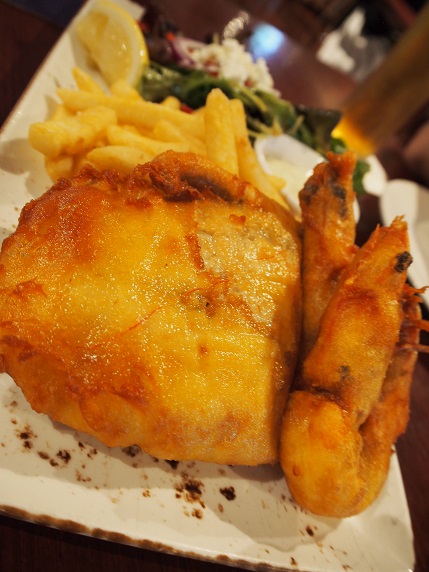 どこまで期待せずに入ったのですが、バラマンディのフィッシュアンドチップスにスパークリング、ピザも頼んでのんびりディナーを楽しむことができました。
