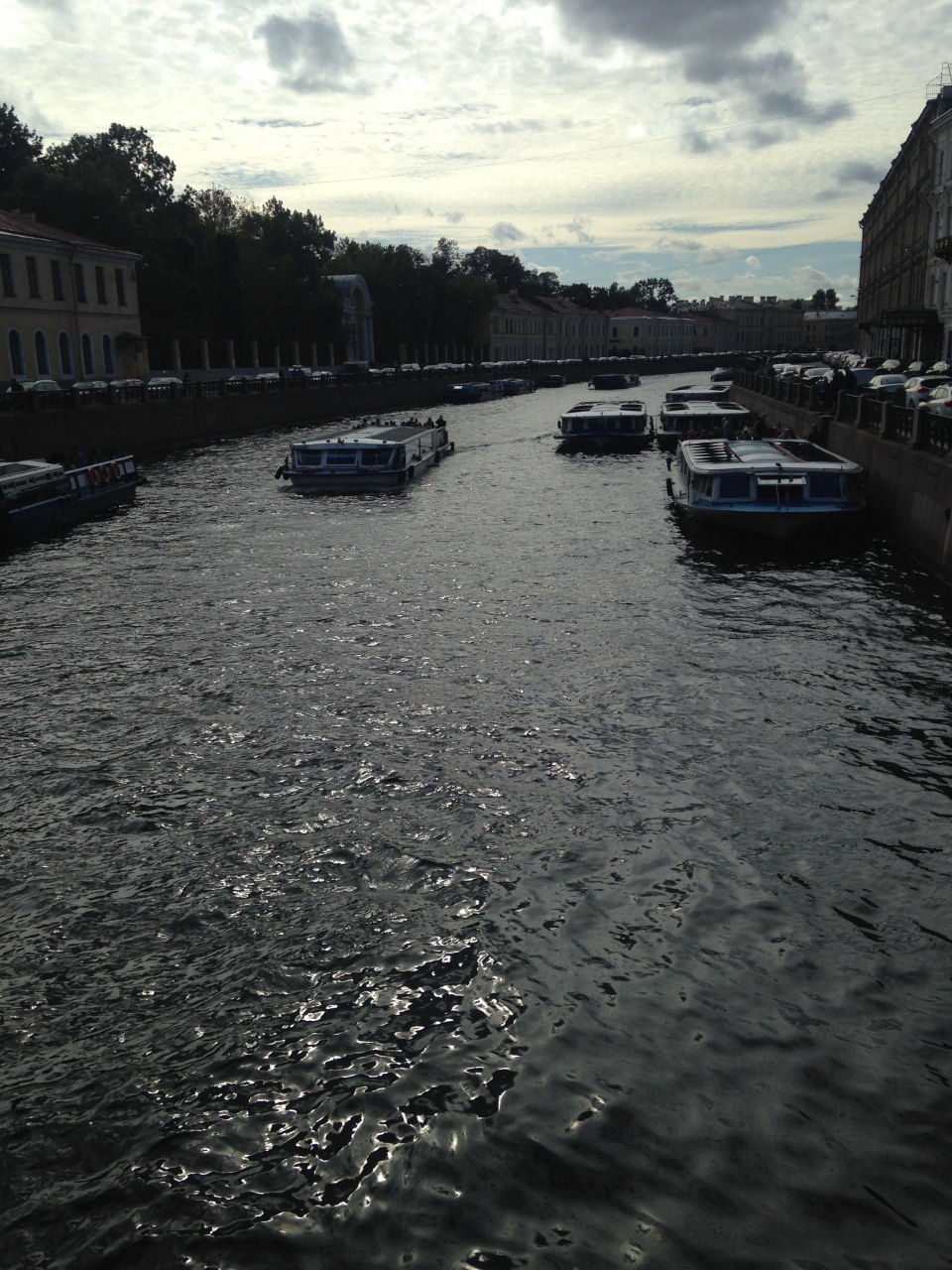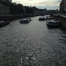 ネヴァ川に運河で旧参謀本部の横も通っています。この運河ではリバークルーズ用のボートもあるので、歩き疲れた時にボートに乗ってサンクトペテルブルグの街を眺めるのもよいです。川沿いにはきれいな建物が並んでいます。