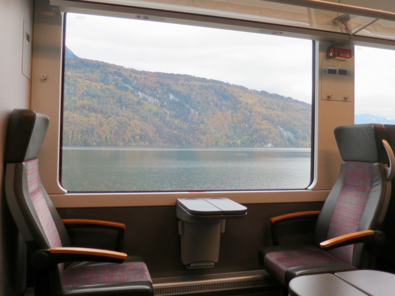 ルツェルンからインターラーケンまで乗車しました。車窓は右に左に好展望が展開するので飽きることはありませんでした。窓も広く思いのほか列車のスピードも速かったです。でもそれも平地の区間のみで峠越えの山岳区間に入るとラックレールを使用することもあって速度は一気に下がります。まるでケーブルカーに乗っているかのように展望が開けていきます。