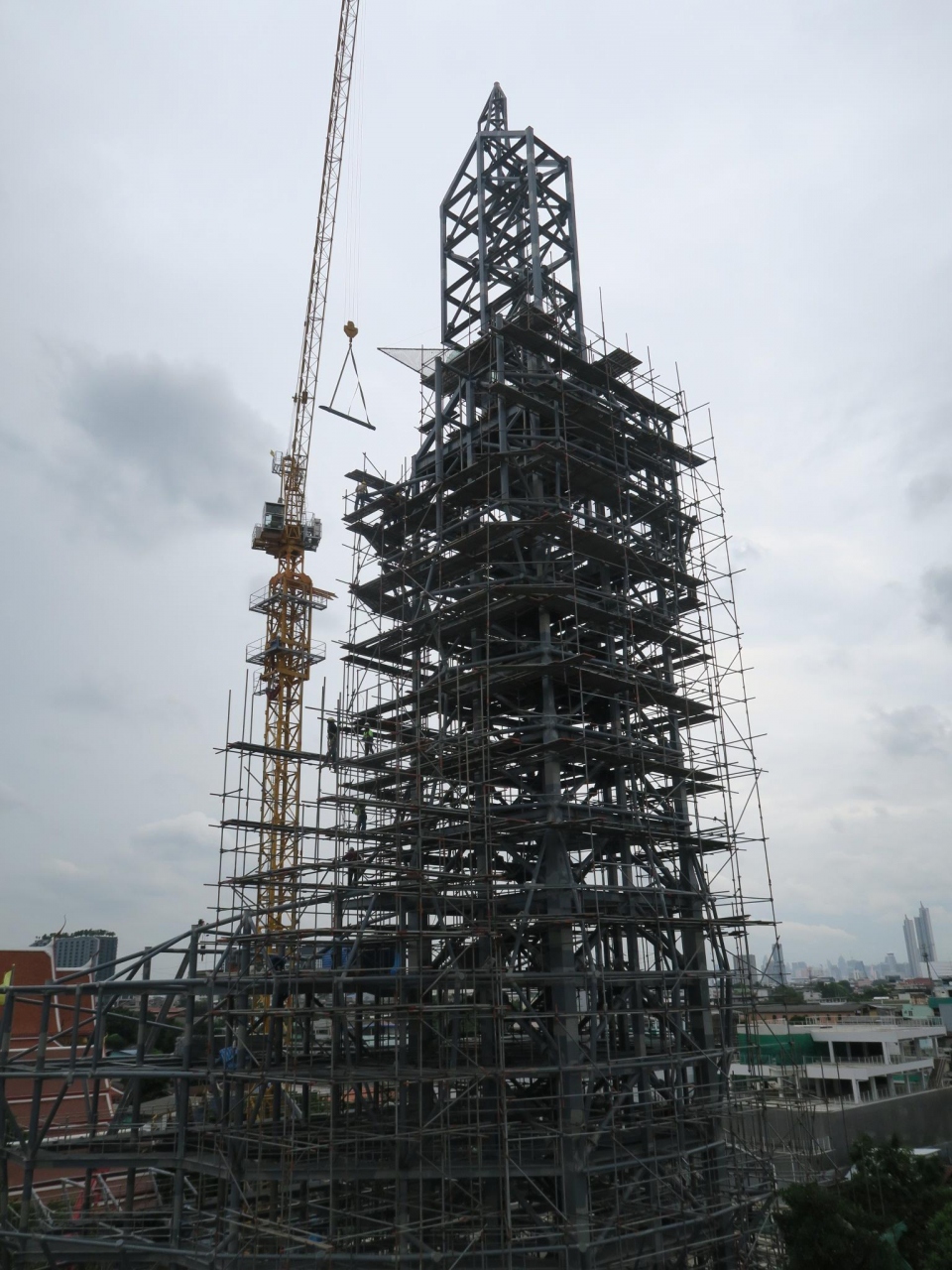 ちなみに、現在隣に仏塔を新しく建設しており、その造る過程が見られるので貴重です。ただしある意味当たり前ですが鉄骨造りの基礎をるとが小宇宙観から現実に引き戻されます。