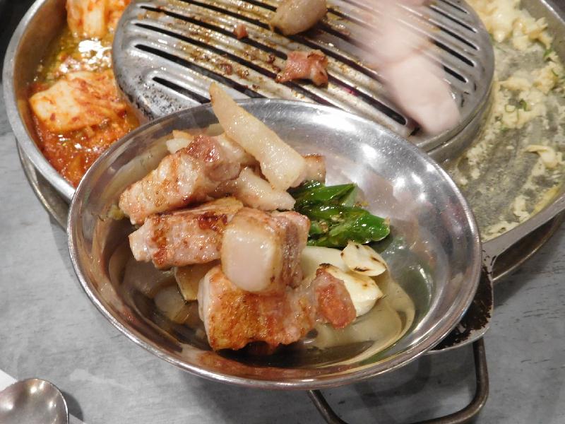 次のサムギョプサルも、厚切り肉でいい感じに美味しく焼けてました。