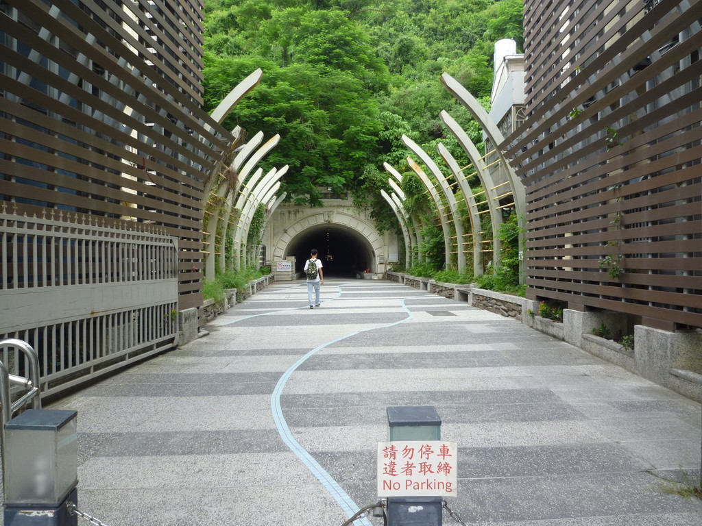 西子湾駅1番出口を降りて臨海新路を真っ直ぐ歩いて突き当たりにあります。歩いて7分くらい。単にトンネルを潜るだけですがなかなか好いですよ。トンネルの抜けると中山大学の構内に出ます。寿山観光には便利な近道です。西子湾の観光には、代天宮→武徳殿のこのルートと海岸沿いに雄鎮北門→哨船頭水岸公園に立ち寄りながらのコースがありますので、行きかえり、それぞれ違ったコースを行かれたらどうでしょうか。