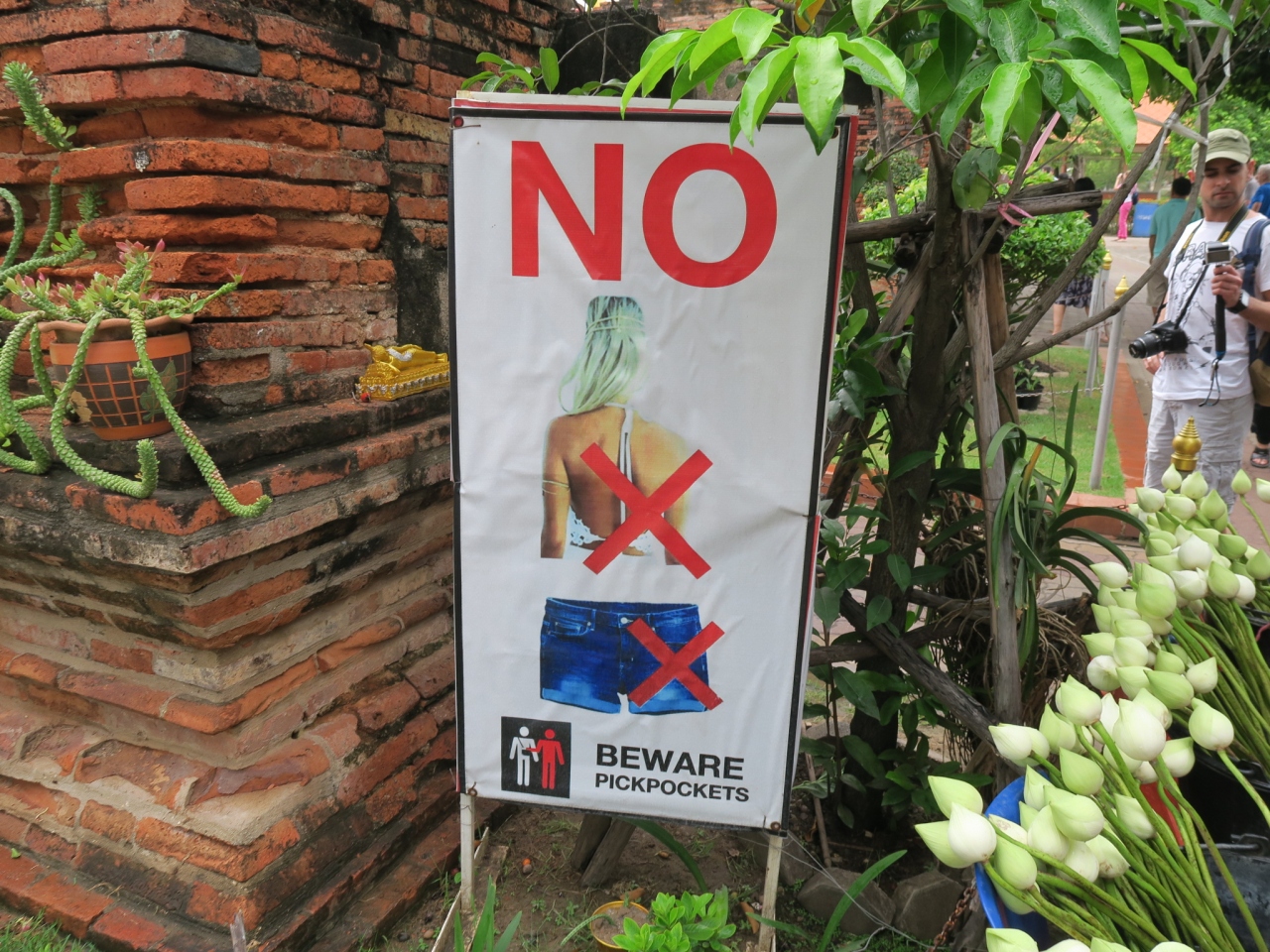 女性は肌の露出の多い格好は厳禁!スリに注意という看板があちらこちらに建っていました。